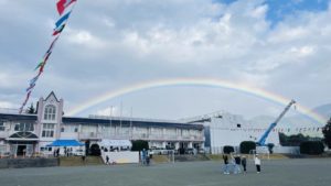 あいにく、準備中、雨が降ってきましたが、なんときれいな虹が!!!