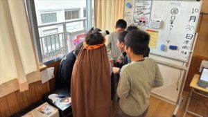 31日に国語の授業で話し合ったことをもとに、ハロウィンパーティーをしました。