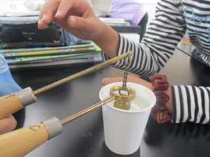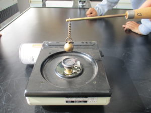 理科で、金属の温度を変えて、体積の変わり方を調べました。