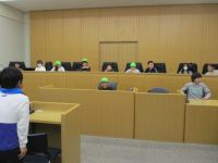 法廷内に入り、傍聴席に座って裁判の仕組みなどについて学習しました。