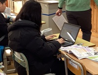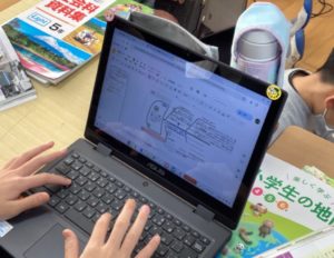学びを振り返ります。タブレットを使うので、みんなの考えをすぐに知ることができます(ICTの活用)
