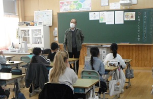 (写真は4年生の道徳科の授業の様子です。今日は、内藤雅人さん(須玉小中学校運営協議会会長)を講師にお招きして授業を行いました)
