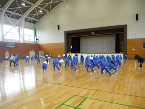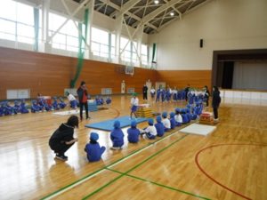 (中学年、高学年も同じように穂足の体育館で体育をしました)