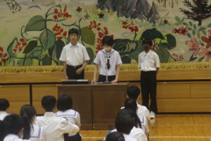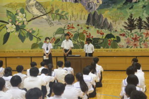 1学期のまとめとなる終業式が行われました。校長先生から夏休み中の「成長」と「安全」の大切さをお話ししていただき,各学年の代表が1学期の振り返りを発表しました。また,その後,表彰式も行い大きな拍手でその栄誉を称える時間となりました。保護者の皆様,本校教育活動へのご理解,ご協力ありがとうございました。今後ともよろしくお願いいたします。