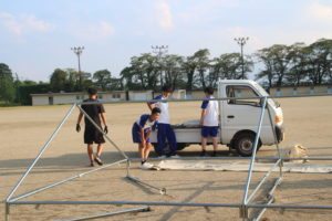 2025-08-26 / 最終更新日時 : 2025-08-26 須玉中 お知らせ 須峰祭に向けて②(体育部門の活動) 部門別に分かれて準備を進めています。体育部門では2日目の体育競技の準備や運営を行います。今日は,グラウンドの準備として,テント張りをしました。みんなで協力して取り組んでいました。