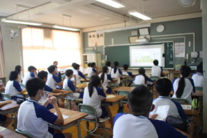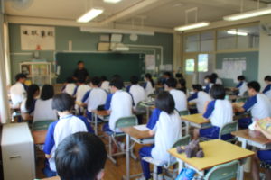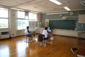 今回の避難訓練は掃除中の各担当場所で,緊急地震速報から地震が発生することを想定して実施しました。校長先生から,授業時間以外の時間についても避難について考えることや,訓練でできたことやできなかったことをしっかり振り返ってほしいというお話をいただきました。その後各学級で,映像を観ながら訓練の振り返りを行いました。