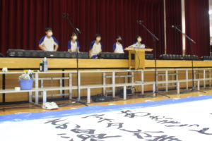 2025-09-04 / 最終更新日時 : 2025-09-04 須玉中 お知らせ 須峰祭に向けて⑫(書道部の活動) 今日は書道部の体育館リハーサルでした。休日も暑い中,練習していた姿が印象的です。本番では,これまでの思いをすべて込め,「輝く」姿を期待しています。
