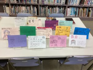 10月14日から21日まで、須玉中読書週間が行われました。先日紹介しました先生方のブックトークに加え、本を借りると挑戦できる『図書ガチャ』や、図書委員会のおすすめの本を紹介するPOPの展示などを行いました。また、明野中学校の図書館にもご協力をいただき、明野中POPコンテストの入賞作品のPOPも展示しました。(須玉中図書委員会の作成したPOPを明野中図書館で展示していただく予定です。)