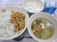 2025-10-27 / 最終更新日時 : 2025-10-27 須玉中 お知らせ ❀今日の給食❀ 今日の給食のメニューは、 肉みそ丼、じゃがいもの炒め煮、もずくスープ、 ストロベリーゼリー、牛乳 でした。 今日のスープに入っている「水菜」「小松菜」は北杜市で有機栽培されたものです。