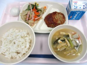 2025-10-31 / 最終更新日時 : 2025-10-31 須玉中 お知らせ ❀今日の給食❀ 今日の給食のメニューは、 麦ごはん、豆腐ハンバーグトマトソース、大根サラダ、 里芋のみそ汁、十三夜のまんじゅう、牛乳 でした。 今日はひと足早い「十三夜給食」です。 今日の小松菜・ねぎは、北杜市で有機栽培されたものです。