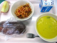 2025-12-01 / 最終更新日時 : 2025-12-01 須玉中 お知らせ ❀今日の給食❀ 今日の給食は、麦ごはん、チキンのみそチーズ焼き、 切干大根の煮物、沢煮椀、プレーンオムレット、牛乳 でした。 新メニュー「鶏肉のみそチーズ焼き」の登場です★ みそとチーズがとても合い、人気メニューになりそうです♪