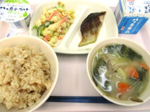 茶飯、あじのカレー焼き、マカロニサラダ、