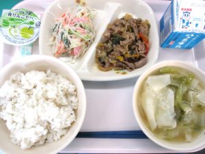 ワンタンスープ、青りんごゼリー、牛乳 でした。