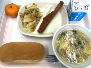 きのこと卵のソテー、くだもの(みかん)、牛乳 でした。