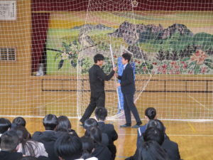 本日は北杜警察署にご協力をいただき、不審者対応に向けた防犯訓練を行いました。地震などの災害を想定した訓練は定期的に行っていましたが、不審者対応の訓練は初めてでした。緊迫した雰囲気の中で、生徒一人一人が真剣に取り組み、不審者侵入時にどのようにして身を守るかを学びました。また、職員も生徒の安全確保や対策についてしっかりと考える良い機会となりました。今回の訓練での学びや反省点を活かし、生徒が安心安全に学校生活を送れるよう努めていきたいと思います。