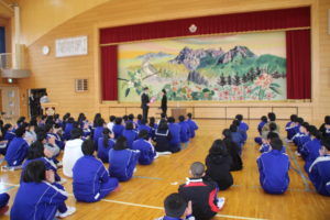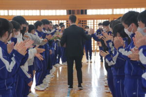 2026-02-26 / 最終更新日時 : 2026-02-26 須玉中 お知らせ マイケル先生お別れ会 ALTのマイケル先生とのお別れ会を行いました。生徒代表から花束を贈るとともに、これまでの感謝の気持ちをメッセージに込めて英語で伝えました。最後にはマイケル先生から温かい言葉をいただき、会場は名残惜しさを感じる、寂しいひとときとなりました。