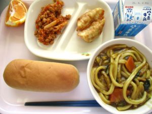 カレーうどん、くだもの(ぽんかん)、牛乳 でした。
