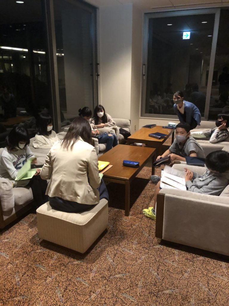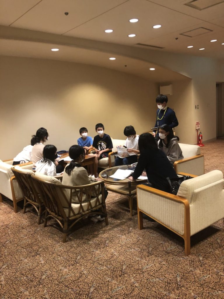 夕食後には、部屋長会議と保健係会議が開かれています。1日の活動を振り返り、明日に向けての課題が子供たち自身から出されています。小さな活動の積み重ねが、子供たちの主体性を育みます。