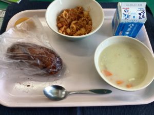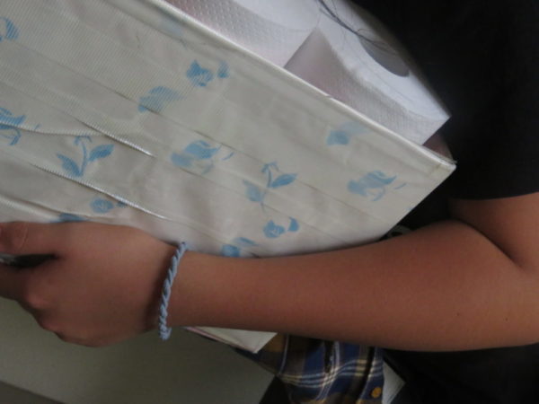 階段でトイレットペーパーを補充する6年生とすれ違いました。