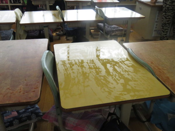 5年教室は、机が水拭きされていました。