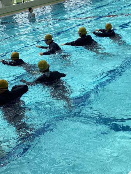衣服を着たまま水に落ちたときに、どうするかを学ぶためです。