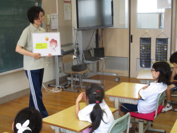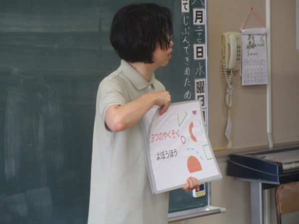 身体測定を実施する前には、養護教諭の藤巻先生からの保健指導が行われました。