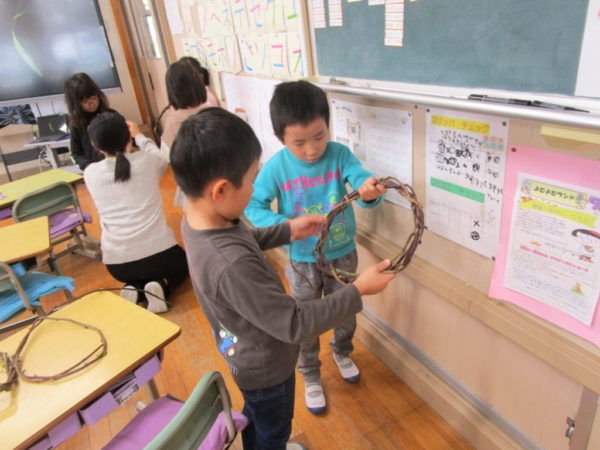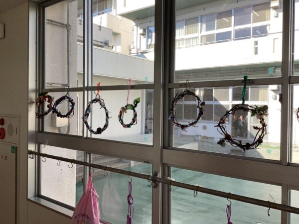 みんな、思い思いの飾りをつけ、きれいなリースが完成しました。