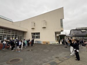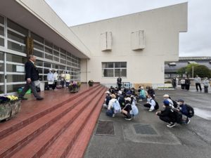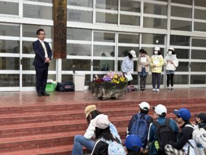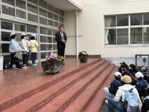 パラパラ小雨を感じましたが、予定通り玄関前で出発式が行えました。