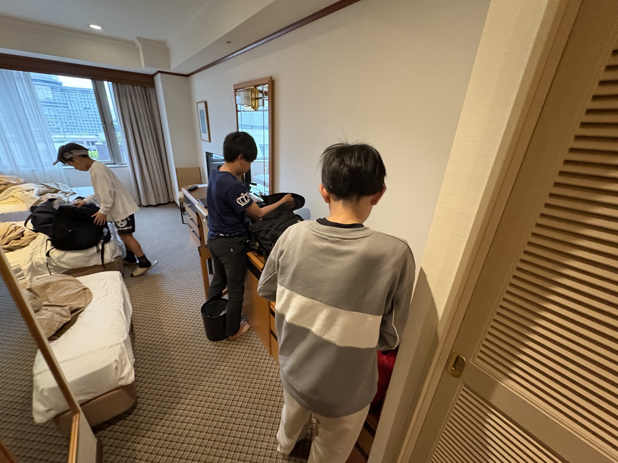 朝食前、荷物の整理が進みます。