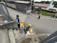 また、自転車に乗ったつもりで学校周辺を歩き、見通しの悪い場所での一時停止、減速について確認をしました。