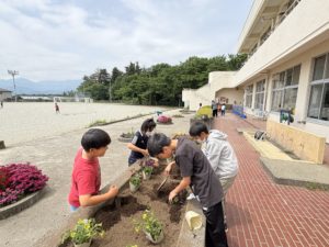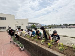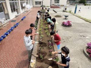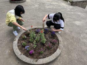 いただいた花は、学校花壇に植え替えて大切に育てています。