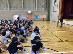 業前に全校集会を行いました。