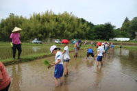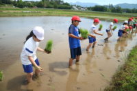 山本さんはじめとする地域の方々のご協力と見守りのもと,子どもたちは楽しく田植えを体験をすることができました。