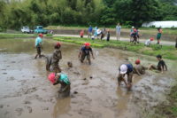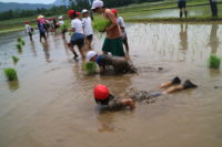思ったよりも田んぼの泥が深く,歩くのも一苦労。