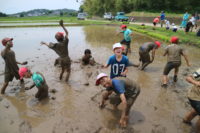 田植えの後は,子どもたちが楽しみにしていたどろんこレース!