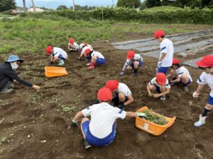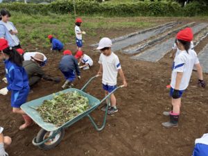 畑に入った3年生がまず行ったのが「草取り」