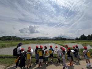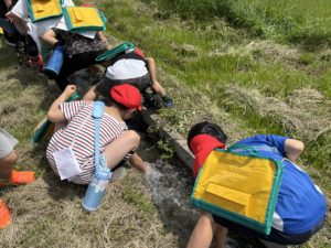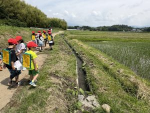 水路をたどって5年生の田んぼを発見し,