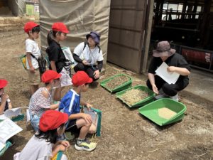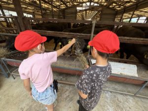 牧草ロール転がしや牛への餌やりなどにも夢中になりました。