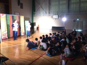 日本影絵協会より「かかし座」さんをお迎えし,全校観劇を行いました。