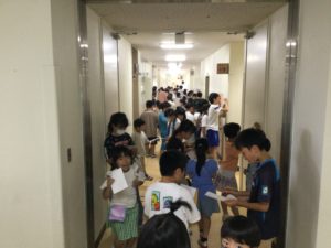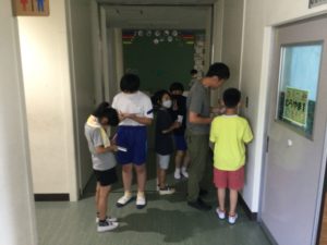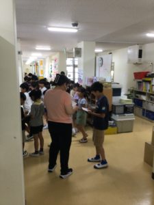 「こんにちは」「好きな食べ物は何ですか?」廊下,階段が子どもたちのあいさつと会話であふれていました。