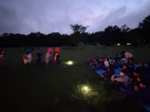 森の静寂に包まれながらキャンプファイヤーを終えます。