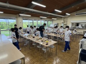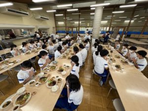 2025年6月26日 / 最終更新日時 : 2025年6月26日 高根西小 自然教室 夕食 食堂で夕食をいただきます。 配膳は自分たちで行います。 おかずやご飯の数を確認。夕食のおかずはハンバーグ。 しっかり食べて、体力回復&夜の活動に備えます。