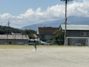 日中は気温が高くなるので、早い先生は6時ころから草取りや草刈りをしています。