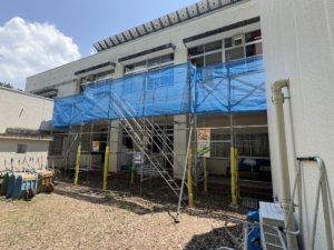 夏休みの高根西学校では、大きな工事が行われています。