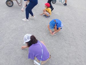 業前の10分間,全校児童画が校庭に出て,小石拾いや除草作業を行いました。