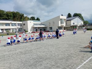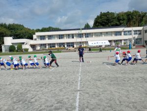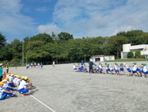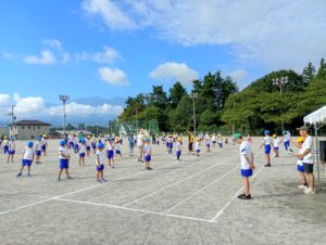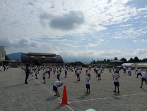 晴天に恵まれ,3日目にして,はじめて校庭で全校練習ができました。