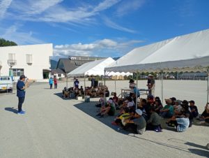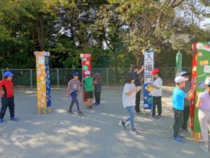 1校時には,たてわり競技の練習を終え,最後の色別会議で気合を入れた子どもたち。