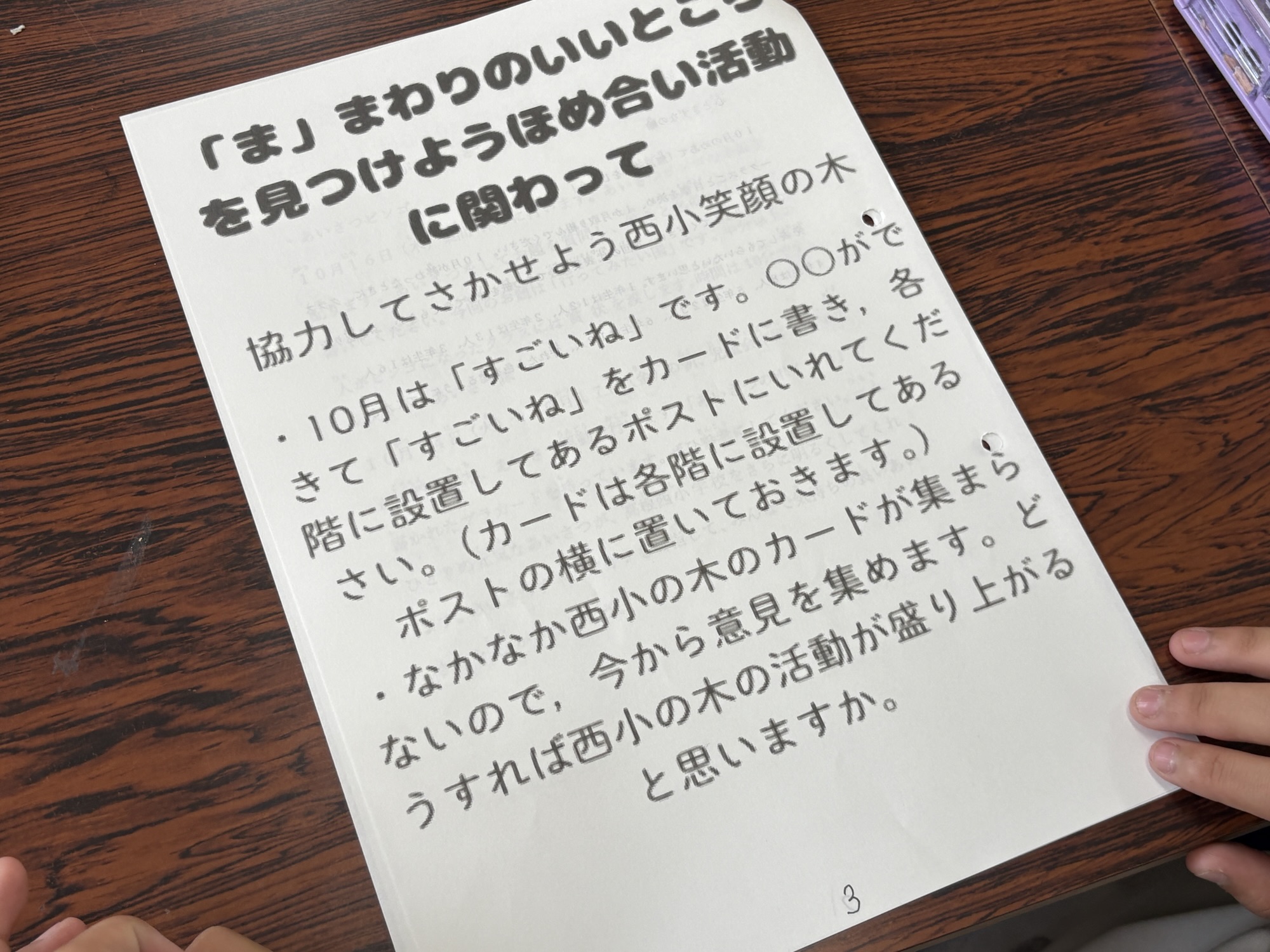 「ほめあい活動」をどう盛り上げていくかについて話し合うことでした。