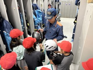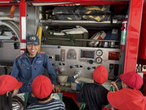 子どもたちは全てに興味津々で、説明してくださる消防士の方の話をよく聞き、質問もたくさんできました。