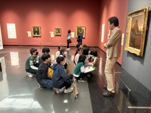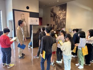美術館の先生方から、ミレーさんの作品や山下清さんの作品を解説していただきながら、絵を深く見ることに挑戦しました。